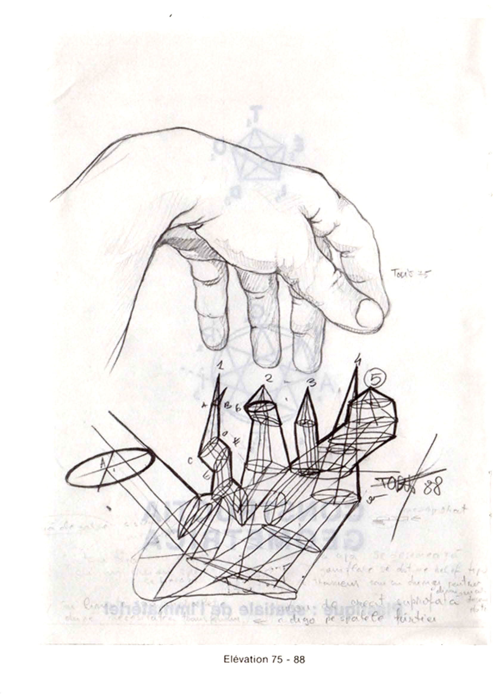 Already, the drawing reveals the sharpness of a vision that serves the sculptural mutation. "Geometric construction is the static form of idea development," he says. It gives body to the immaterial.